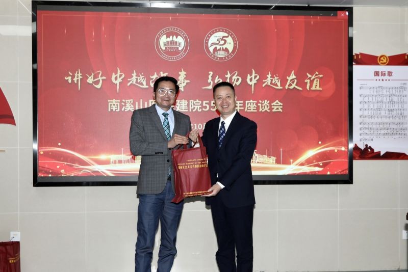 55年前,南溪山医院为抗美援越而生,收治了5432名越南伤病员,铸就了一座中越友谊的历史丰碑。55年后的今天,在南溪山医院的一场主题为“讲好中越故事,弘扬中越友谊”座谈会,大家欢聚一堂,越南驻南宁总领事馆总领事杜南忠和南溪山医院第四任院长贾太昌、第五任院长尤剑鹏、第六任院长刘邕波、第七任院长杜振宗以及现任党委书记柳宏林、院长李朝旭齐聚首,与当年参与救治越南伤员的医护人员、后勤人员共同讲述当年烽火岁月的动人故事,再续前缘佳话。
