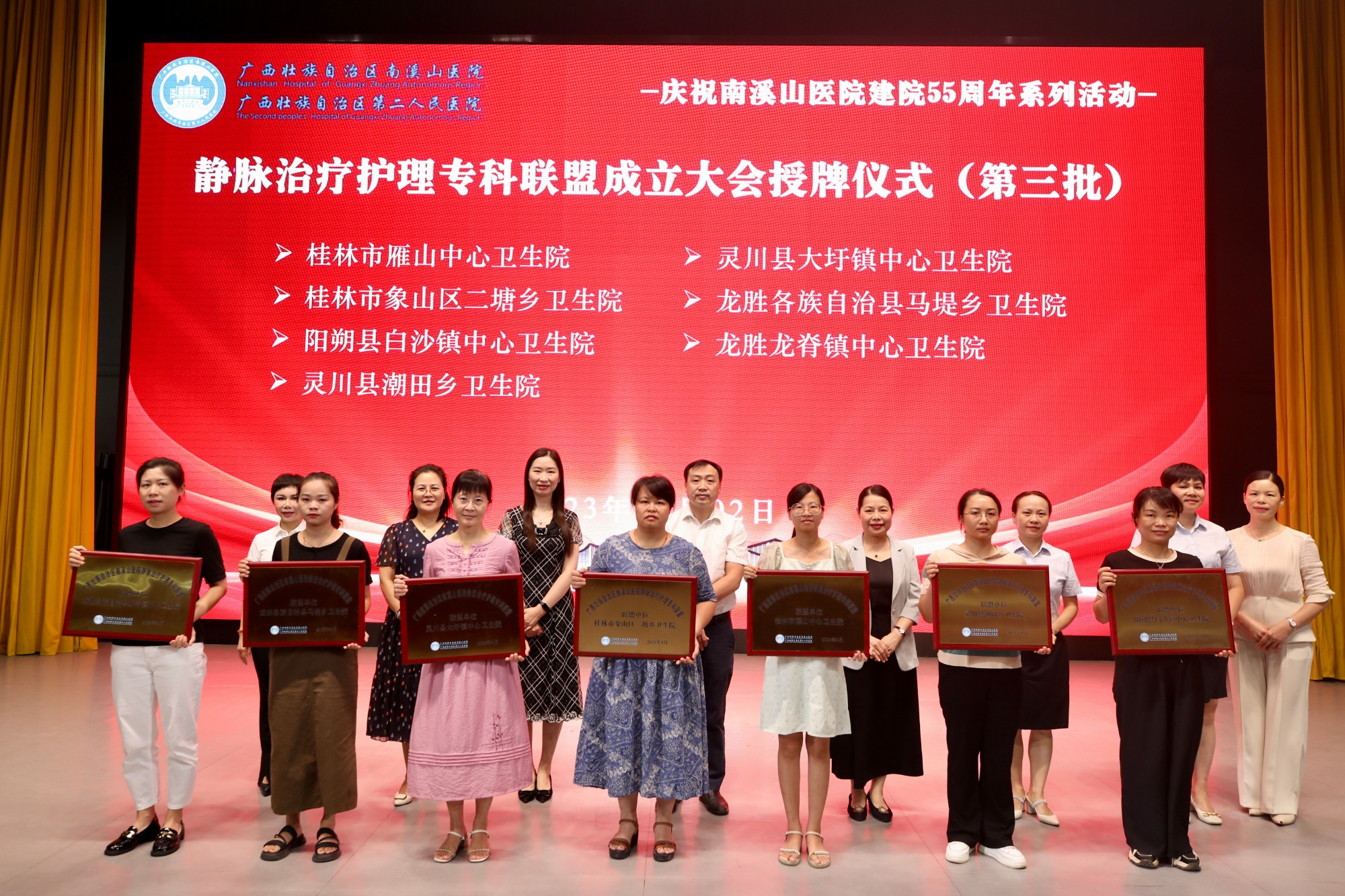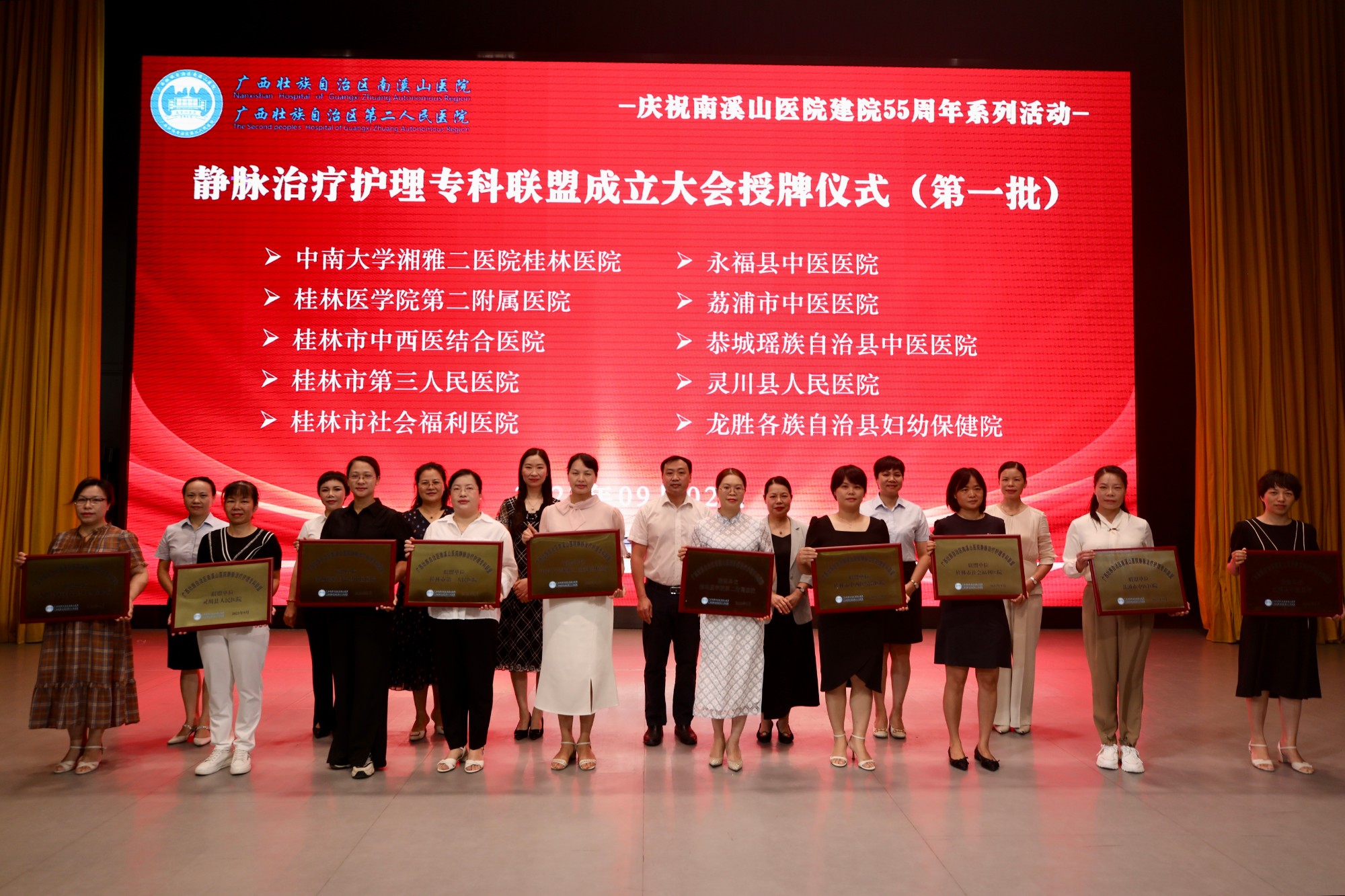 9月2日,自治区南溪山医院举行静脉治疗护理专科联盟成立大会,该院副院长胡长付在会上宣布,广西壮族自治区南溪山医院静脉治疗护理专科联盟正式成立。这是桂林市首家以护理为主导的专科联盟,标志着护理专业在区域医联体建设的形式上有了跨越式的发展,加入联盟的医疗机构共有26家,其中三级医院3家、二级医院16家一级卫生院7家。