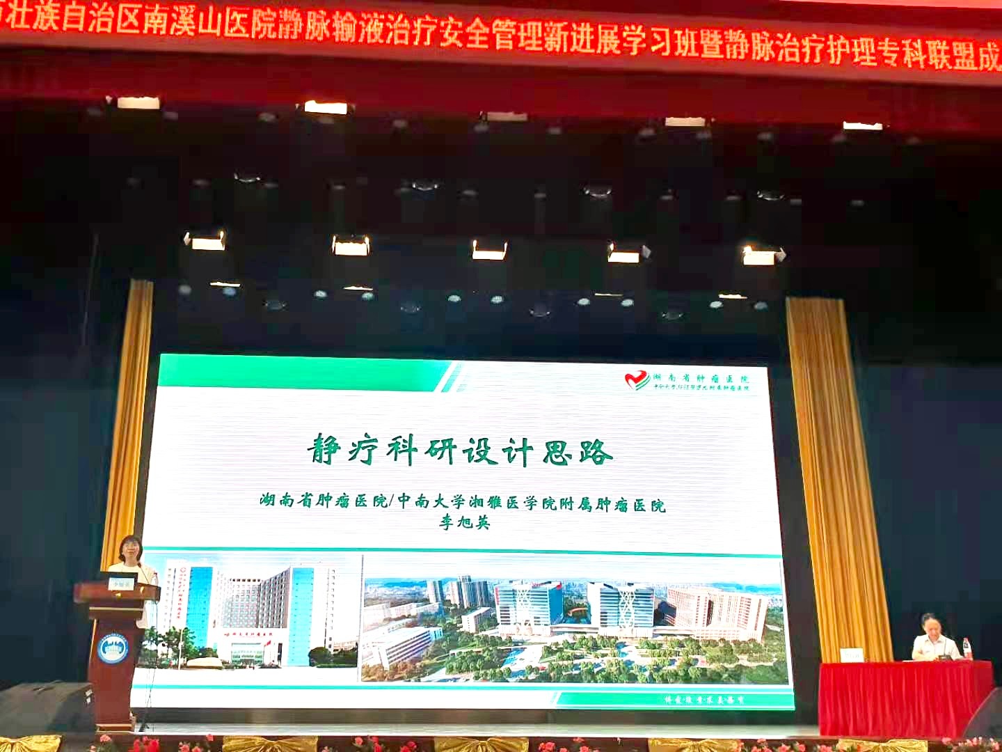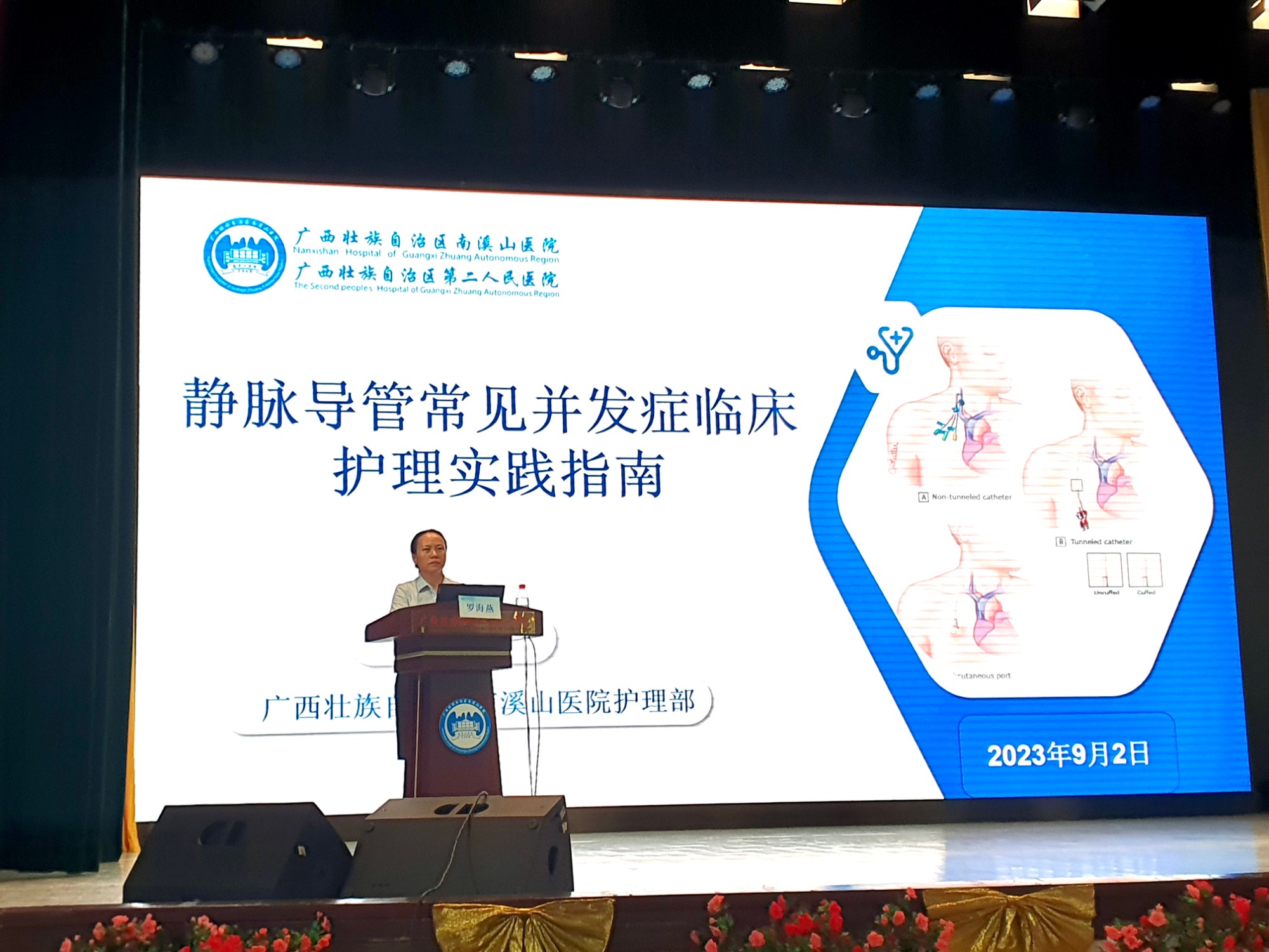 为提升静脉输液治疗护理能力和管理水平,推动区域静脉治疗护理工作的专业化、同质化高质量发展,当天,广西壮族自治区南溪山医院还成功举办静脉输液治疗安全管理新进展学习班,会议邀请多名区内外知名护理专家进行专题讲座,来自桂北地区30家医疗机构近200名学员参与学习交流。会议由南溪山医院护理部主任管起招主持。