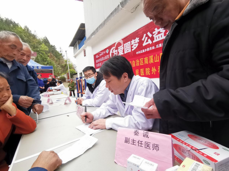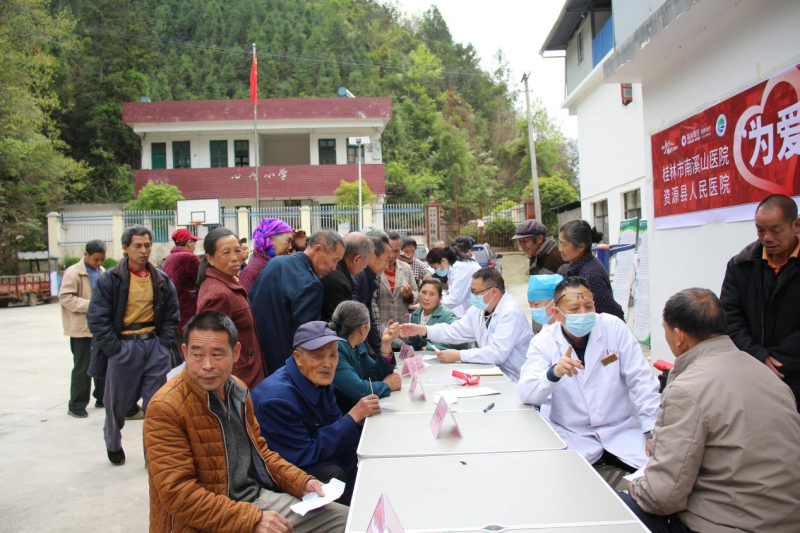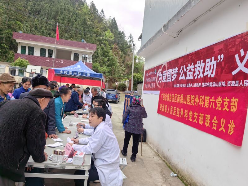 4月9日,自治区南溪山医院胃肠外科、超声医学科、电生理科携手资源县人民医院内外科,在资源县瓜里乡白竹村开展了主题为“为爱圆梦 公益救助”的联合义诊活动。