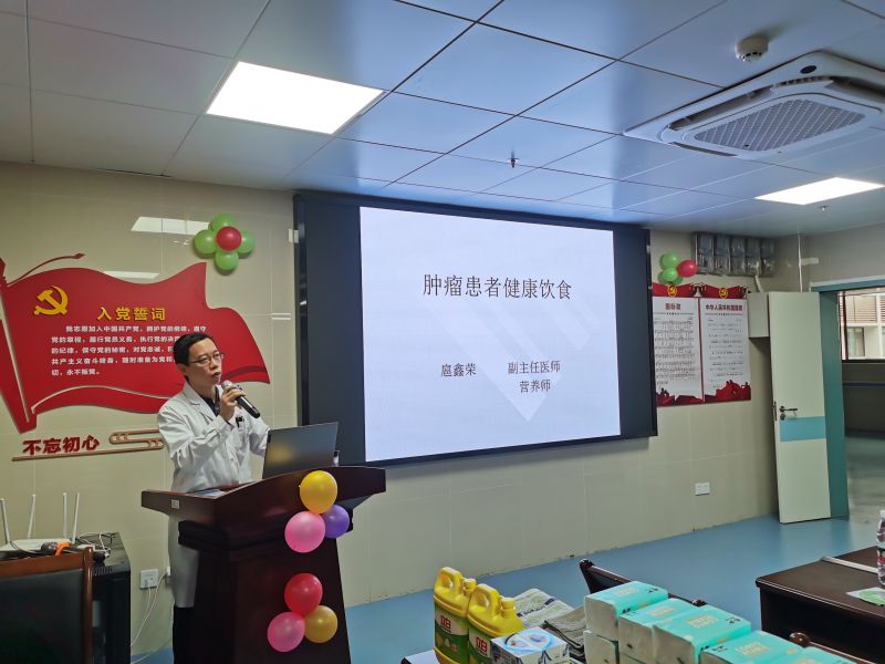 讲座中,副主任医师扈鑫荣以《肿瘤患者健康饮食》为题,与现场患者互动交流,为他们答疑解惑,让患者了解癌症现在是可防可治的一种慢性病,对于肿瘤的防治,每个人是自己健康的第一责任人,要做好“三级预防”。他表示,要保持良好的生活习惯,做好防癌体检,预防癌症发生,一旦发生癌症,要早期发现、早期诊断、早期治疗。防癌要全周期、全人群、全社会共同参与,做到早预防、早发现、早诊断、早治疗,才能不断提升全民健康水平。