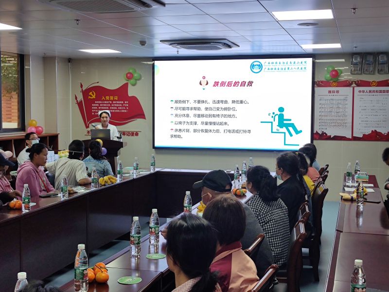 肿瘤内科一病区护理团队还向现场患者及家属介绍了预防跌倒及发生跌倒后自救的小技巧,增强他们的安全意识,保障医疗安全。