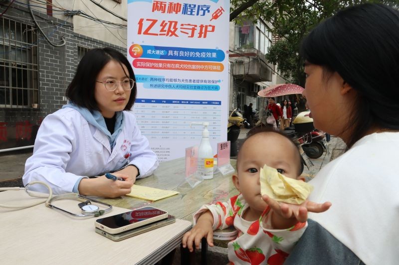 据了解,当地被犬猫致伤的群众较多,并且大部分人不会主动前往医院治疗,导致患者不能得到及时有效地救治。针对这一现象,医护人员向当地群众科普了狂犬病的症状、传染源及传播途径和预防措施,并发放宣传手册,引导他们做好狂犬病的预防,让他们明白及时就医的重要性。同时特别强调,在被动物致伤后,需要及时处置伤口,并要尽快到狂犬病暴露处置门诊进行专业、规范化的治疗,按时完成狂犬病疫苗全程接种。