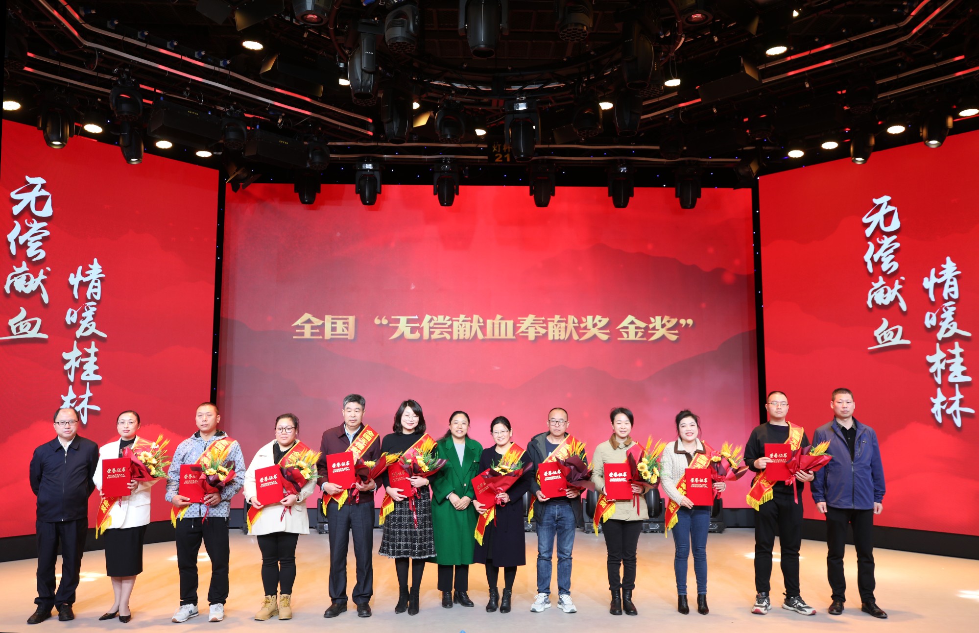 杨平(左二)荣获全国无偿献血奉献奖金奖