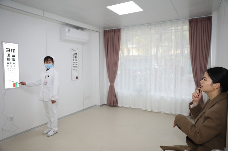 4.术后第一天,护士为成功手术的患者检查视力。李金戈摄