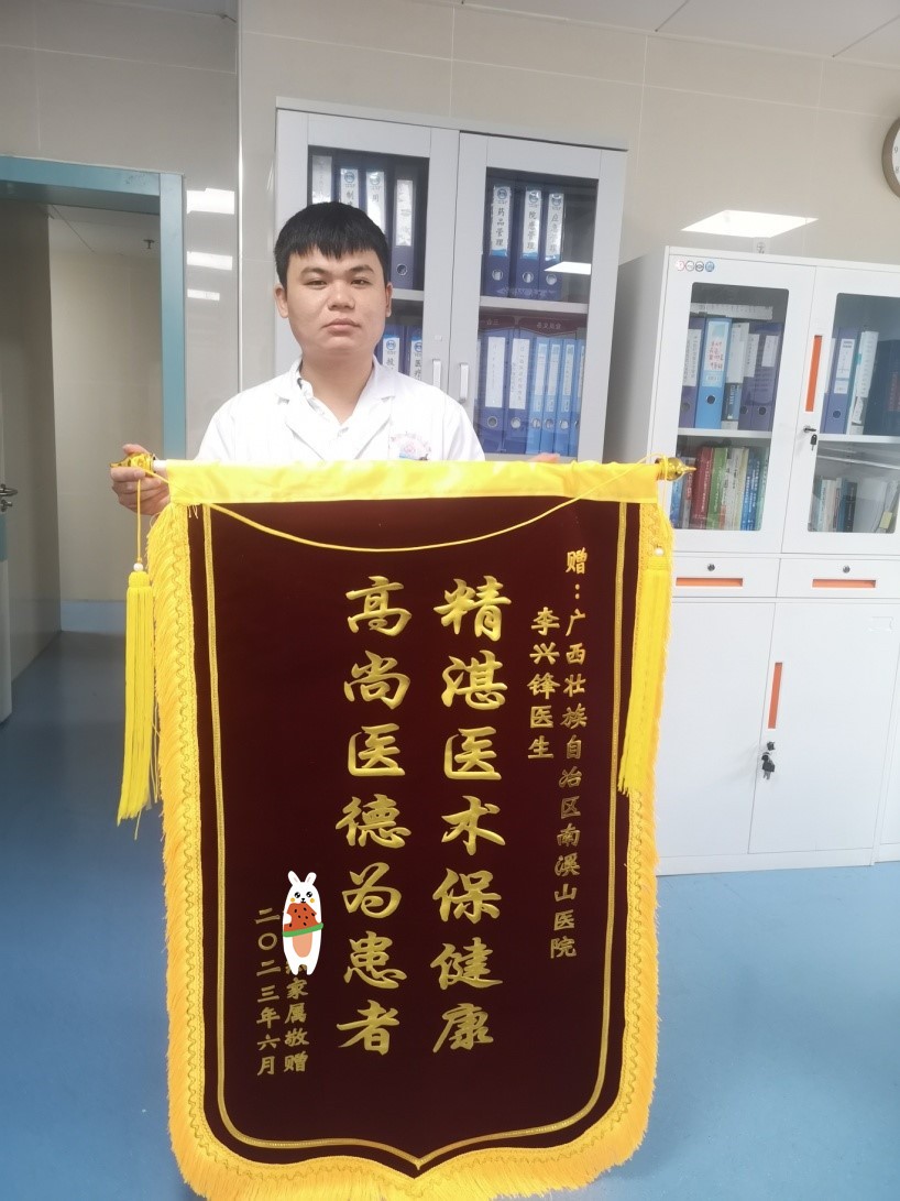 近日,广西壮族自治区南溪山医院中医科收到了一份特殊的快递,科室人员打开一看,竟然是一面送给李兴锋医生的感谢锦旗。追问之下,李兴锋医生才向大家道出了事情的原委。