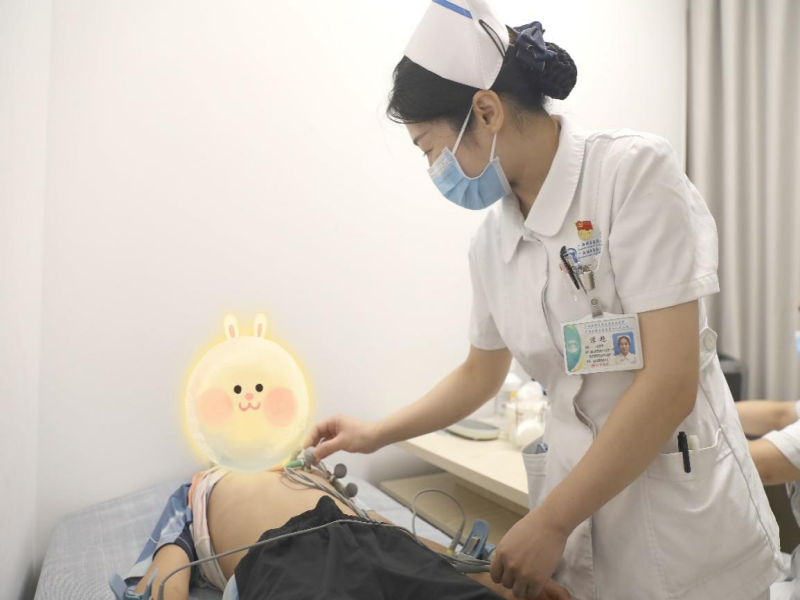 南溪山医院国际健康管理中心副护士长谭艳正在为健儿测量心电图