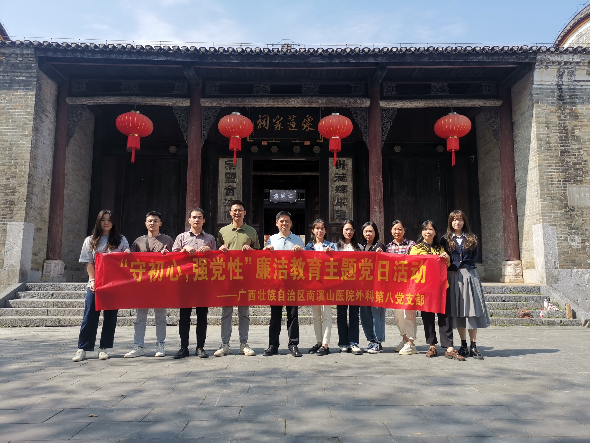 为弘扬廉洁从业精神,提高党员同志党性修养,增强党组织的凝聚力,10月28日,南溪山医院外科第八党支部组织党员及积极分子到灵川县九屋镇江头村爱莲家祠廉政文化教育基地开展“守初心,强党性”廉洁教育主题党日活动。