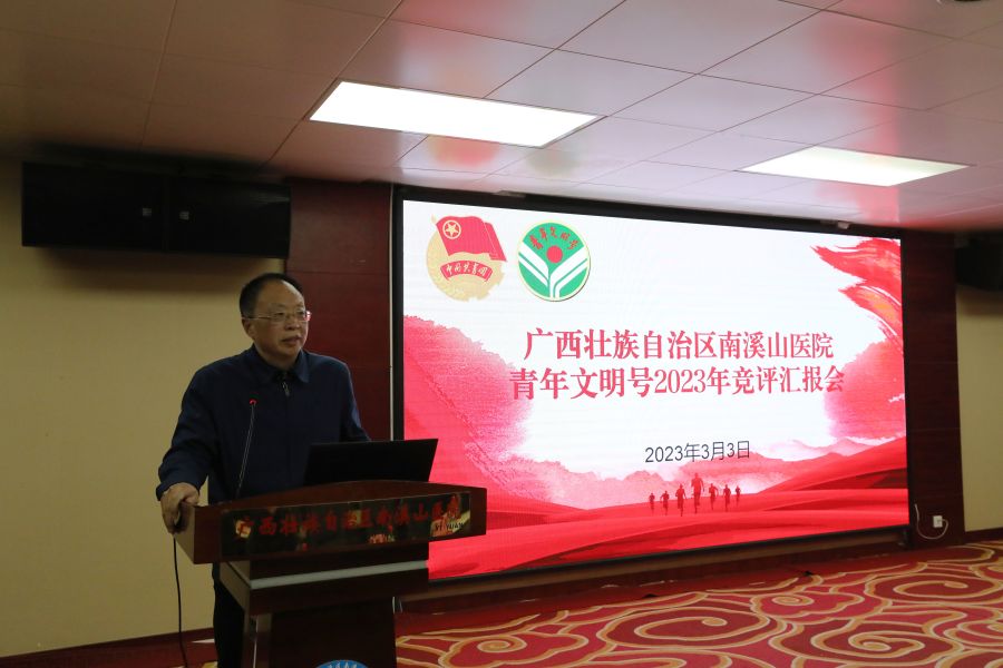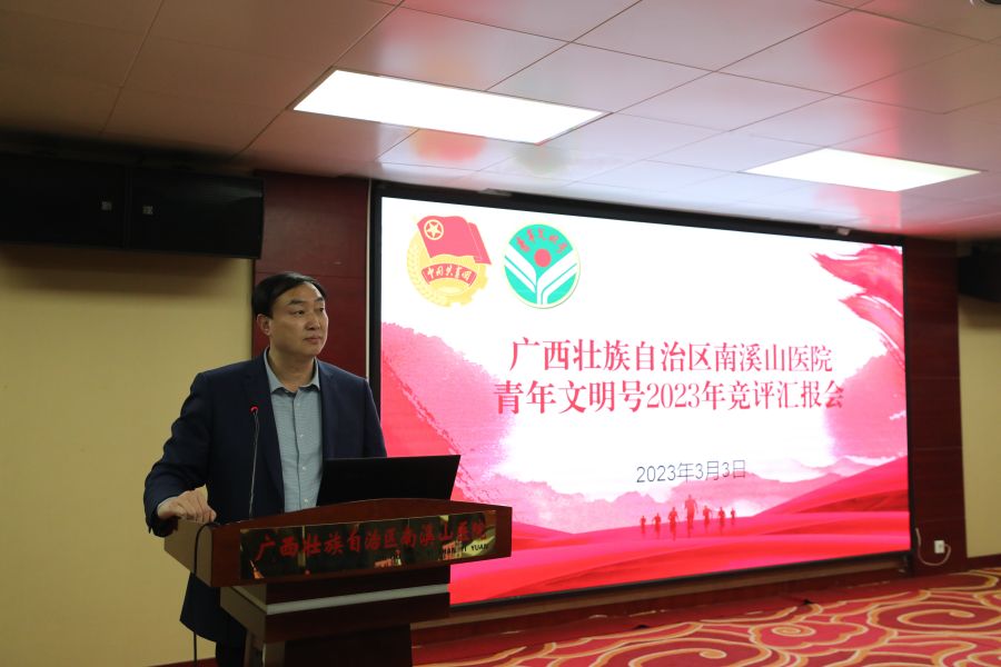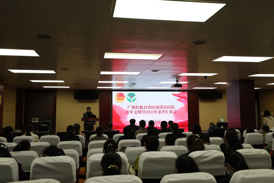 为推动青年文明号创建工作广泛、深入、持续开展,3月3日下午,广西壮族自治区南溪山医院召开了2023年青年文明号竞评汇报会。医院党委书记、院长刘宇军,党委副书记、工会主席张超群,医院团委、护理部、宣传统战科等部门负责人,各团支部书记及青年代表近100人参加了活动。此次活动得到了共青团桂林市委的大力支持,团市委权益部部长王卉出席汇报会并担任评委。