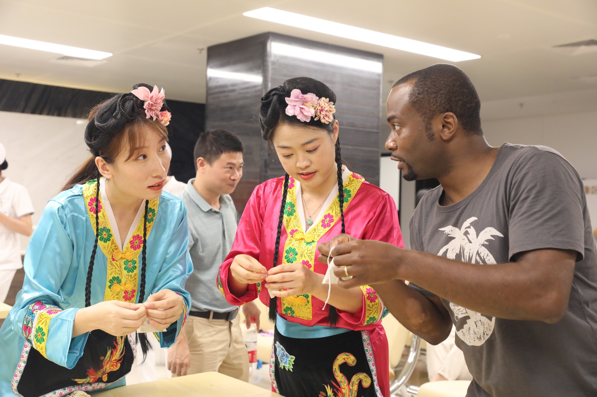 通过表演节目、制作香囊、抛绣球等形式向外籍友人传播中国传统文化