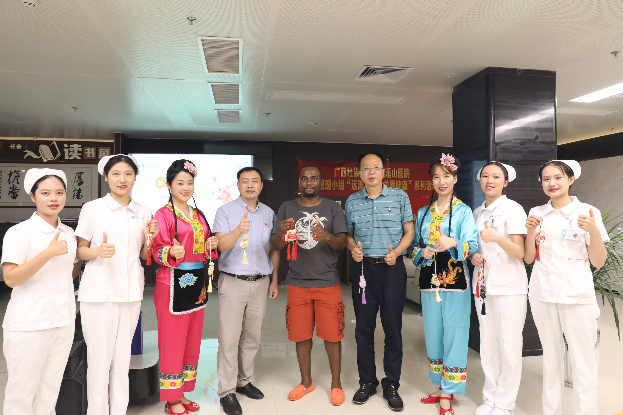 淡淡棕叶香,浓浓世间情。又是一年端午节,为弘扬中国传统习俗,促进健康管理,6月20日,广西壮族自治区南溪山医院血管外联合医院VTE防治护理小组,在国际健康管理中心与中外友人共同开展“远离血栓,关爱健康”为主题的端午节活动。 医护人员通过表演节目、制作香囊、抛绣球等形式向外籍友人传播中国传统文化,提高广大民众对预防深静脉血栓的认识。
