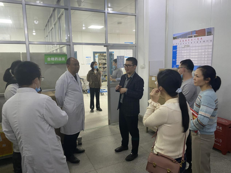 座谈会上,南溪山医院药学部主任汪江波详细介绍了医院发展、党建、科室药事管理、临床药学、PIVAS 管理和各部门工作等情况,双方就如何共谋药学服务高质量发展,促进合理用药及发挥药师价值等方面进行了深入交流。随后,在汪江波主任等人员的带领下,岳家奎主任一行参观了南溪山医院门诊药房、中药房、住院部药房、药库和临床药学室等。岳主任对南溪山医院药事管理及学科建设等予以了高度评价,他表示通过沟通交流可以进一步促进学科管理创新,取长补短,提升工作成效,不断提升药学服务水平。