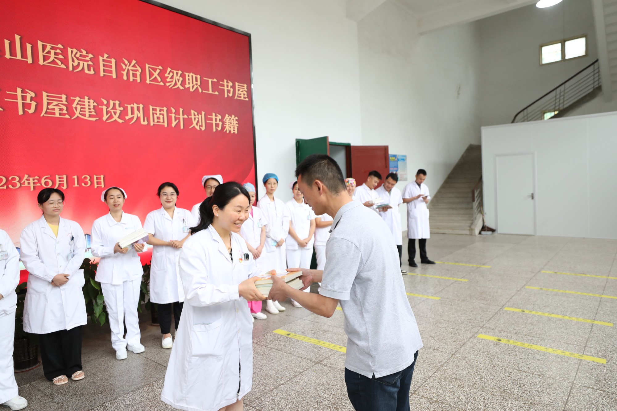 “南溪山医院文化建设有亮点、有特色,党建、工会活动开展的也是有声有色,希望这批图书能对医院职工读书学习起到积极的促进作用!”6月13日,桂林市总工会党组成员、副主席周世伟充分肯定了广西壮族自治区南溪山医院职工书屋建设成效,并代表桂林市总工会向医院捐赠250余本图书,助力打造自治区级职工书屋,巩固桂林市工会职工书屋建设成果。