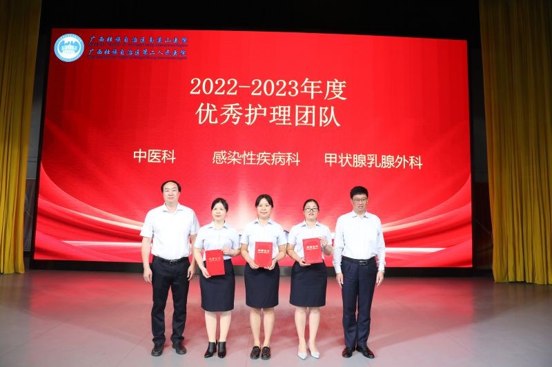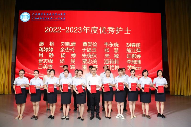 5月15日,广西壮族自治区南溪山医院举行2022-2023年度优秀护理工作表彰仪式,分别表彰2022-2023年度“优秀护士”、“优秀护士长”、“优秀教育护士”、“优秀护理专项管理小组”、“优秀护理团队”等五项荣誉。