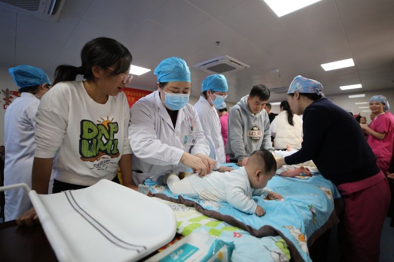 新生儿科的医护人员还现场为宝宝们进行了义诊,结合日常生活中家长们遇到早产儿的生长发育、家庭护理、母乳喂养等常见问题进行了相关讲解。同时还为宝宝制作手脚印留恋、体格检查、抚触示范,得到了家长们的一致好评。