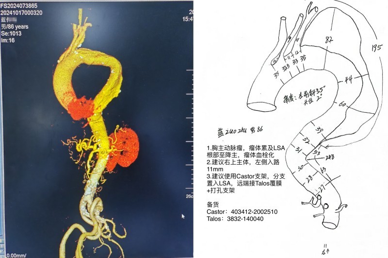 蓝大爷,一位来自蒙山的86岁退休老中医,尽管年事已高,但一直以来身体还算硬朗,生活起居自给自足,还热爱练气功。然而,2024年10月13日凌晨1时许,老人突然遭遇胸背部剧烈疼痛的袭击,活动时疼痛更是加剧。家人迅速将其送往当地县医院,CT检查后发现老人患有胸主动脉瘤,并疑似主动脉夹层。鉴于病情严重,县医院建议紧急转往上级医院治疗。