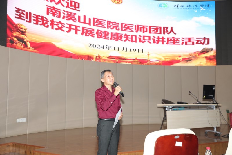 活动伊始,桂林旅游学院工会副主席沈国伟介绍了活动目的、参加活动的领导及医护专家。随后,南溪山医院副院长、工会主席唐芬发表了致辞。她表示,自2021年8月南溪山医院启动百场送健康进基层公益活动以来,已经走进了上百个企业、学校、部队、社区等。此次走进桂林旅游学院,既是双方深厚友谊的体现,也是南溪山医院履行公立三甲医院担当和使命的重要举措。唐芬介绍,位于雁山区内的南溪山医院公共卫生应急救治中心在今年九月份正式投入使用,在桂林旅游学院附近,能为雁山区的广大百姓特别是广大高校师生提供优质医疗服务,且所有收费为二级医院标准。