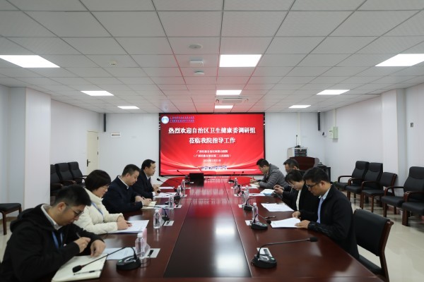 3月21日,广西壮族自治区卫生健康委员会科教处处长庞清一行4人,赴自治区南溪山医院开展科研教学工作调研。医院党委副书记、院长李朝旭,副院长胡长付及相关部门负责人出席会议。