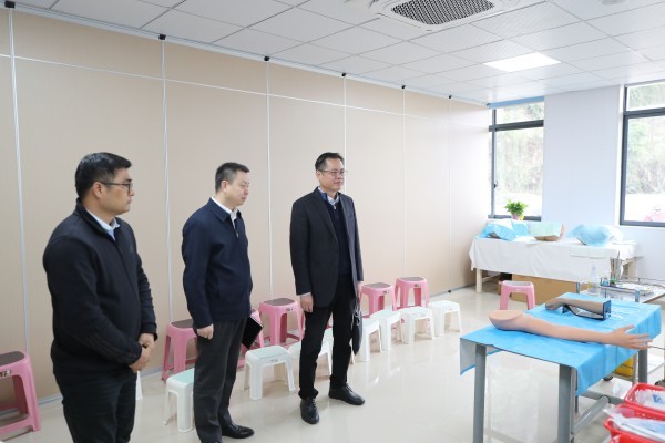 会后,调研组一行实地考察医院OSCE考站建设情况,并为教学基地建设提出合理化建议。自治区南溪山医院是由自治区卫健委直属的一家集医疗、教学、科研、预防、保健、康复等功能于一体的国家三级甲等综合医院。医院内科住培基地获得2023年度广西自治区住院医师规范化培训重点专业基地,是桂北地区唯一一家自治区级内科住培重点专业基地。2023年底新建成的科研教学综合配套楼投入使用,为医院教学建设提供高质量硬件保障。