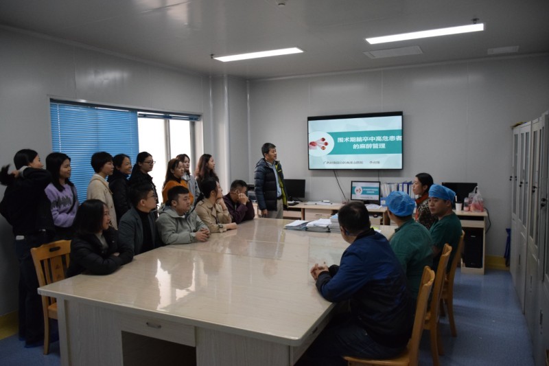 上午时分,党员和积极分子们抵达阳朔县人民医院。他们与麻醉科、手术室的同仁们深入交流了党建心得,并开展了临床疑难问题现场教学授课。通过医学专家技术下沉基层的活动,不同医院党支部之间的交流合作得到了进一步加强,共同探索党建引领医疗服务群众的新路径。