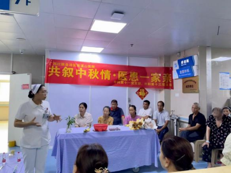 八月桂花飘香,月满中秋话团圆。在中秋佳节到来之际,为积极响应中华护理学会关于开展“护理科普活动周”的要求,为医院住院患者带来最真挚的节日祝福、专业的知识解答,营造温暖、贴心的院内节日氛围。近日,自治区南溪山医院外科第十一党支部、外科第十三党支部共同开展了“共叙中秋情,医患一家亲”迎中秋送月饼送祝福活动。