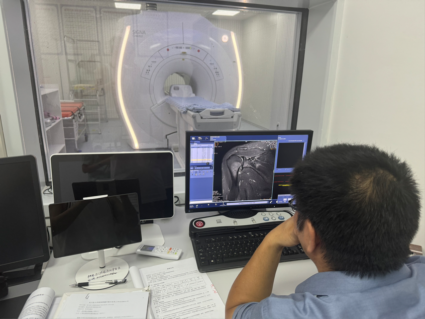 近期,灵川县人民医院放射科新引进的磁共振设备,因尚未通过验收程序,故暂未能正式开展磁共振检查服务。鉴于此情况,该院特向自治区南溪山医院影像科发出技术支持的诚挚邀请。自治区南溪山医院医学影像科积极响应,科室负责人杨文主任亲自率队,携同由资深医师、专业技师及护理人员构成的专家小组,于8月9日午后时分抵达灵川县人民医院,旨在为该院的磁共振设备验收工作提供全方位的技术协助与支持。