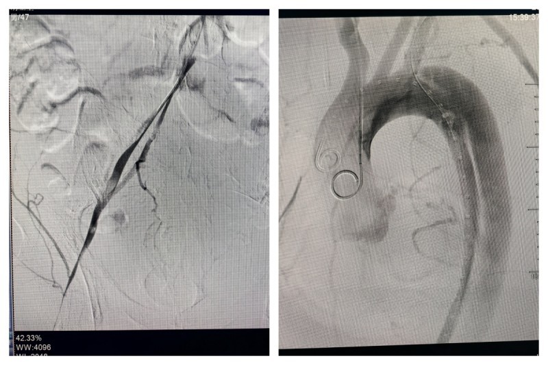 然而,面对如此严峻的挑战,南溪山医院心脏大血管外科的医疗团队并没有退缩。他们迅速为胡某安排了紧急手术。手术中发现,胡某的病情比发病时更为严重。术中造影显示,其主动脉夹层真腔十分细小,左侧髂总动脉闭塞,右侧髂动脉以假腔供血为主。这一情况给手术带来了巨大的困难。