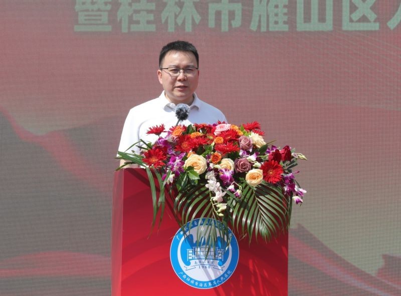 仪式由自治区南溪山医院副院长唐芬同志主持,自治区南溪山医院党委副书记、院长李朝旭同志对各位领导及嘉宾的到来表示热烈的欢迎,并对长期以来关心支持南溪山医院发展的各级、各部门表示衷心的感谢。他表示,桂林市雁山区人民政府与自治区南溪山医院以公共卫生应急救治中心启用为契机,进一步深化合作,构建了桂林首个紧密型城市医疗集团,以更加紧密的姿态并肩前行,共同翻开医疗合作服务基层的崭新篇章。他强调,医院将继续秉承“以人民健康为中心”的宗旨,进一步加大对雁山区医疗资源的投入,提升医疗服务水平,加强应急救治能力建设,为桂林市南片区乃至更广泛地区的经济社会发展保驾护航,为守护广西北大门筑起一道坚实的健康防线。