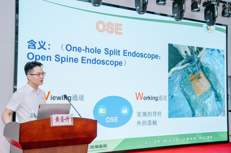 本次会议围绕脊柱单轴内镜,双通道内镜与显微内镜技术热点问题展开。广西医科大学第一附属医院詹新立教授以枕颈畸形的手术治疗为题,向大家分享具体医疗工作历程,引发大家对枕颈畸形手术的重视与思考;来自广西壮族自治区人民医院的韦建勋教授结合自己丰富的临床经验,讲解了OLIF 技术在脊柱感染中的临床应用;广西中医药大学第一附属医院覃海飚教授继续推进快速经椎间孔入路腰椎融合术(Q-TLIF)研发工作,他向与会同仁讲授该技术的临床应用与未来发展;广西医科大学第二附属医院黄圣升教授则向大家分享了单孔分体内镜(OSE)技术,OSE技术是目前微创脊柱外科新兴技术,黄圣升教授围绕并发症防治展开讲述,具有很强的临床指导意义。