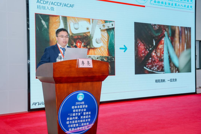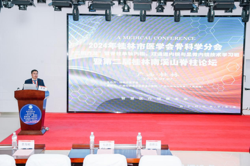 9月7日,由桂林市医学会主办,广西壮族自治区南溪山医院承办的2024 年桂林市医学会骨科学分会“三镜齐发”暨脊柱单轴内镜,双通道内镜与显微内镜技术学习班暨第二届桂林南溪山脊柱论坛在南溪山医院教学科研综合楼顺利召开,大会由执行主席、自治区南溪山医院脊柱外科主任李亮教授主持。来自区内外多家医院的200余名医护同仁共襄盛会。