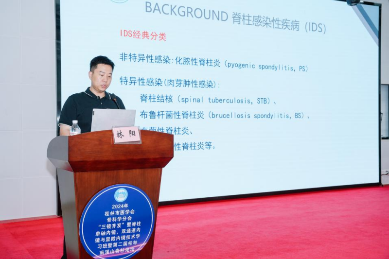 19.林阳教授以《单侧双通道脊柱内镜技术在腰椎感染性疾病中的价值与应用》为题进行授课