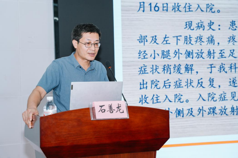 21.石善龙教授以《一例腰椎间盘突出症脊柱内镜术后疼痛的思考》为题进行授课