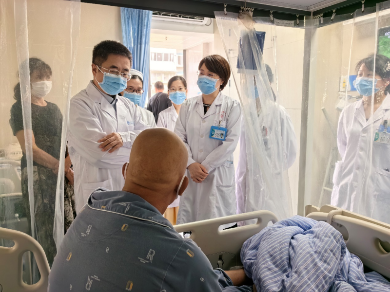 活动中,姜尔烈教授向与会人员介绍了中国医学科学院血液病医院干细胞移植中心近年在造血干细胞移植领域的丰硕成果,阐述了关于造血干细胞移植治疗急性白血病的临床应用和学术研究,并到南溪山医院血液内科进行疑难病例查房,分析指导诊疗思路,与该科医护人员分享了治疗方面的最新进展。
