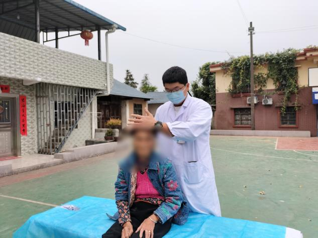 (南溪山医院康复医学科治疗师蒋青松正在为有颈椎问题的群众治疗)
