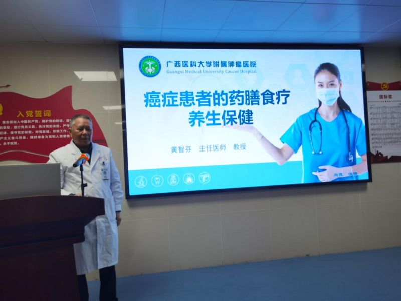 查房结束后,黄智芬教授还开展了“癌症患者的药膳食疗养生保健”讲座,为大家详细讲解了如何通过食物有效预防癌症的发生。