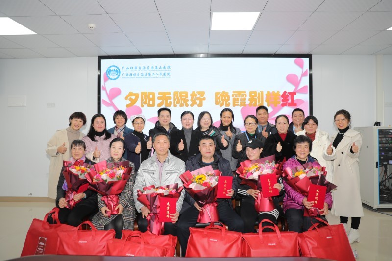 为表达医院对退休职工的深切关怀与崇高敬意,12月25日,广西壮族自治区南溪山医院举行2024年第二批关爱职工“夕阳无限好 晚霞别样好”光荣退休仪式,为2024年下半年退休的7名医院职工送上退休祝福。南溪山医院副院长、工会主席唐芬、7名退休职工、相关科室负责人及退休职工所属科室的负责人出席仪式。南溪山医院工会副主席侯小云主持活动。