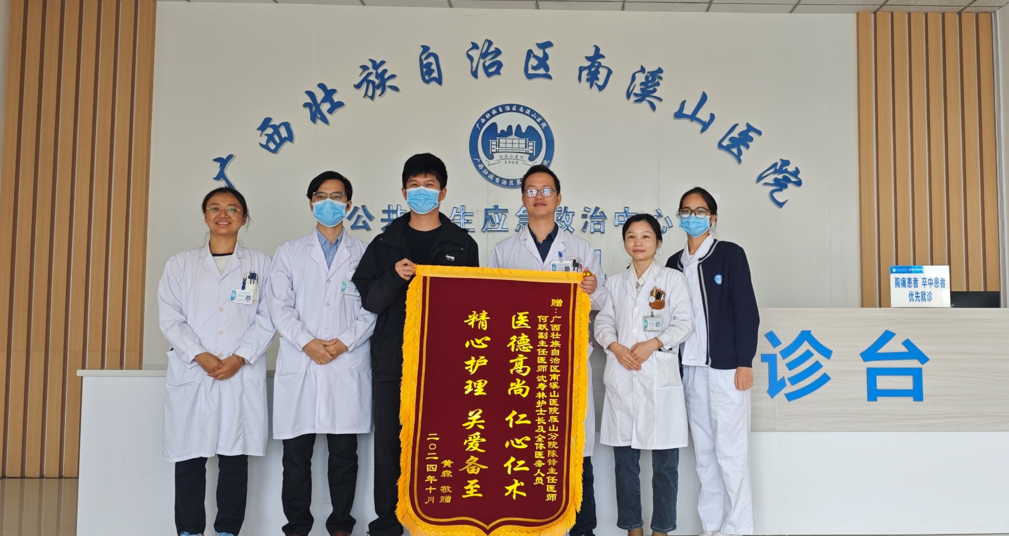11月11日,广西壮族自治区南溪山医院院公共卫生应急救治中心综合病区收到一面饱含深情的锦旗,这面锦旗不仅彰显了患者及家属对科室全体医护人员卓越医术与贴心服务的至高敬意,更映射出医患和谐相处的温馨画面。