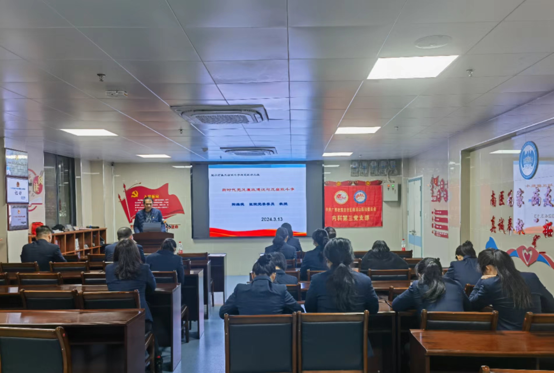 2024年3月13日下午,南溪山医院内科第三党支部在党员活动中心召开2023年度组织生活会和民主评议党员会议,医院党委委员阳维德到会指导。