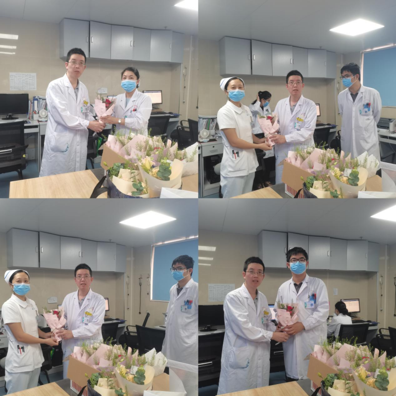 支部书记阳海秀代表支部向各位医生送上鲜花表示祝福