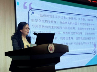 随后,张海萍护士长向师生进行血液疾病知识的科普,从白血病的病因、症状表现、预防措施等方面深入浅出的进行了讲解。她指出,白血病离我们并不遥远,在恶性肿瘤所致的死亡率中,白血病居第6位,在儿童及35岁以下成人中死亡率高居第1位。白血病的发生是多因素、多基因、多步骤、多阶段的复杂生物学现象。白血病是机体固有的遗传基因特性与外界致病因素间相互作用的结果。前者包括宿主自身的因素如年龄、性别、种族和遗传特性等。后者包括环境因素、化学因素、病毒因素等。虽然我们自身固有的遗传特性不能改变,但是我们仍可以避免不利和不良的外界环境因素.随着社会的发展,生活质量的提高,各种食品污染、环境污染、装修污染等均与白血病的发病率上升趋势不无关系,值得我们重视。如在日常生活中,我们要做到远离化学致癌物,如苯、甲醛等,这些物质存在于某些溶剂、油漆、胶水和烟草烟雾中。同时还要做到少染发,新装修房屋尽量勿过早入住,确保室内空气质量良好。也希望老师们保持积极乐观的心态,强身健体,正确面对及处理生活和工作的压力,关注身体健康,定期做好体检。