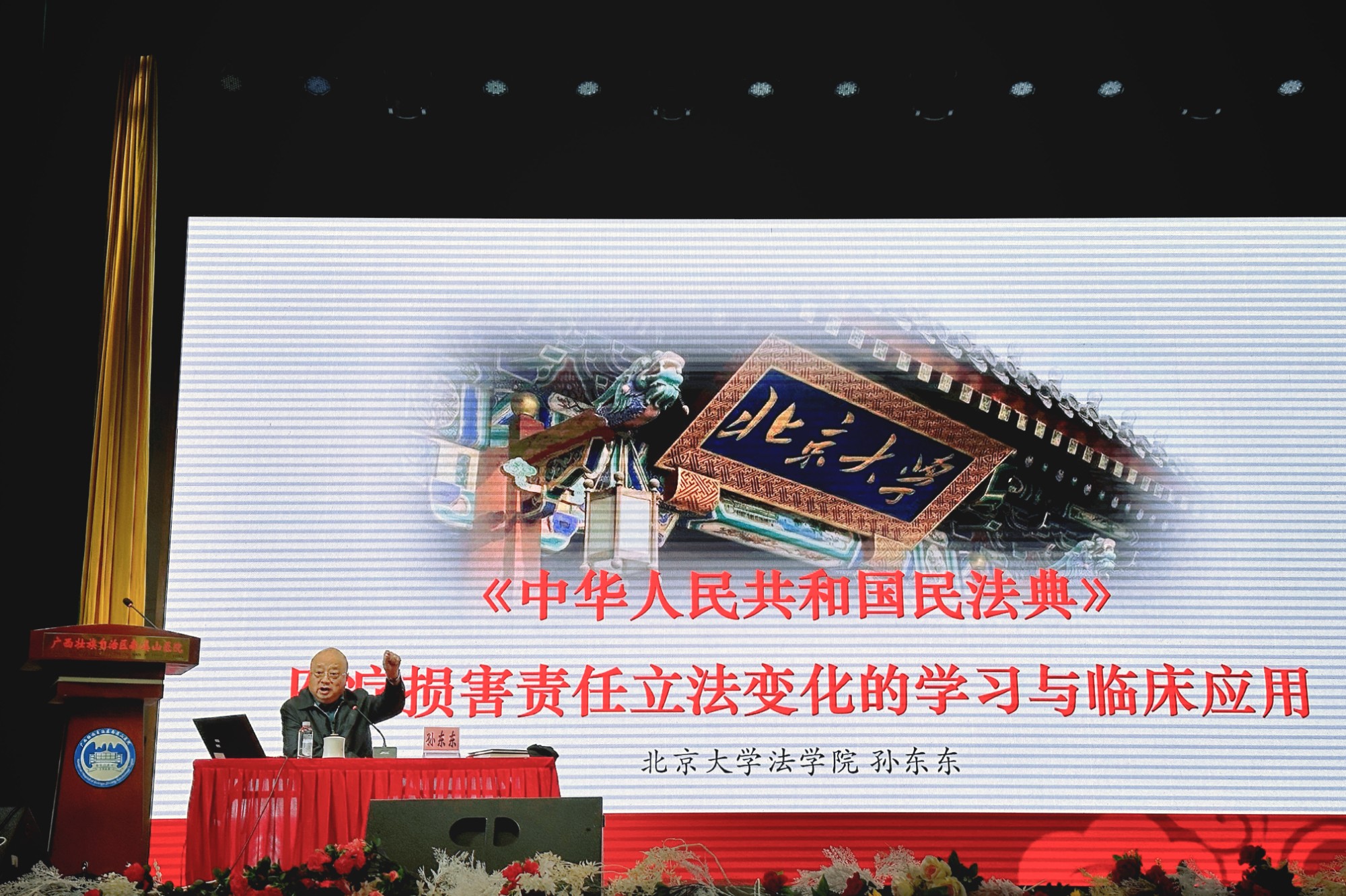 为深入学习《民法典》,进一步提高医院医务人员的医疗质量安全与医疗纠纷防范意识,有效减少医疗损害和医疗纠纷的发生,4月22日下午,自治区南溪山医院特邀北京大学法学院教授孙东东来院作《民法典》医疗损害责任立法变化的学习与应用专题讲座。医院全体领导班子、中层干部到场聆听讲座。