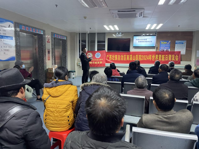 世界肾脏日始于2006年,每年3月份的第二个星期四确定为世界肾脏日。2024年3月14日是第十九个世界肾脏日,主题是:“人人享有肾脏健康--促进医疗平等,优化用药实践”。上午11点,自治区南溪山医院内科第六党支部在血透室候诊区进行“医患同心 “肾”力在握”党建品牌主题活动暨科普促健康患教会,意在帮助肾友们搭建肾病知识体系,建立自我管理意识、提高患者透析质量及生活质量,肾友们及家属积极前来参加此次活动。