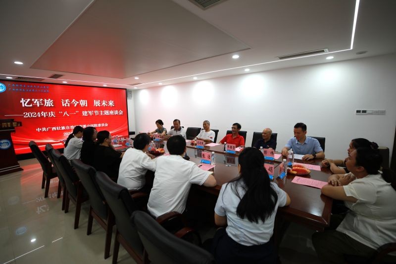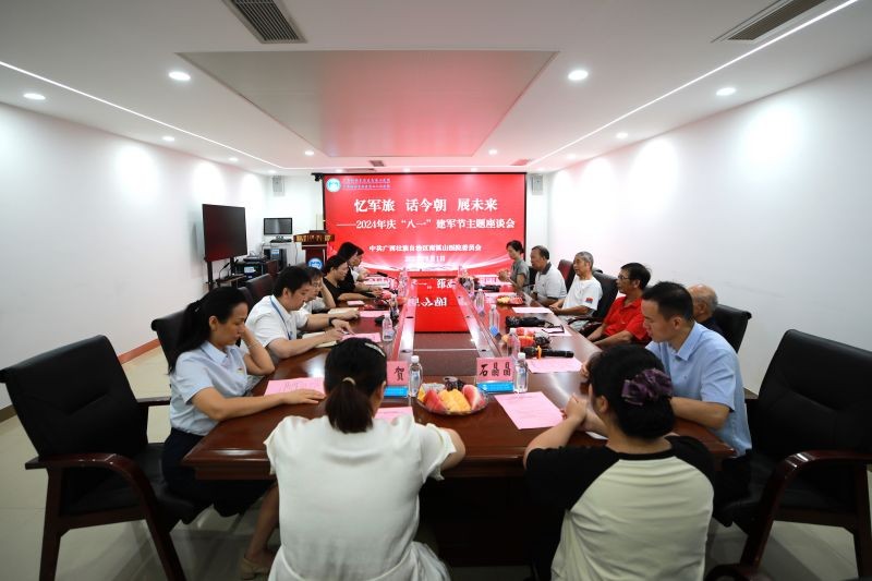 为庆祝中国人民解放军建军97周年,进一步弘扬拥军优属优良传统,营造医院拥军优属拥政爱民的良好氛围,8月1日上午,自治区南溪山医院召开“忆军旅 话今朝 展未来”2024年庆“八一”建军节主题座谈会。南溪山医院党委书记柳宏林与相关职能部门人员参加座谈,会议由医院副院长唐芬主持。