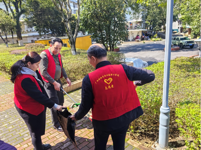 活动中,党员们通过捡拾垃圾,清理杂草等方式,践行着生态文明理念,为美化院区环境贡献个人力量。