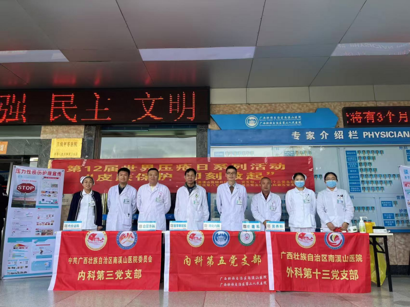 11月21日,为迎接第12届世界压疮日的到来,广西壮族自治区南溪山医院外科第十一党支部、外科第十三党支部、医技第八党支部、内科第三党支部、内科第五党支部在医院门诊区域联合举办了一场以“皮肤保护,即刻做起”为主题的义诊活动,旨在普及压疮知识,提高市民对压疮的预防和治疗意识。
