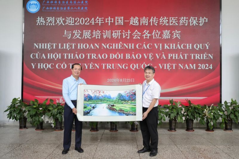 8月23日,以越南河江省卫生厅副厅长黄国局为代表的中国-越南传统医药保护与发展培训研讨班学员一行到访南溪山医院,深入了解南溪山医院援越历史,就深化双方卫生健康交流合作进行交流探讨,赓续中越友谊。
