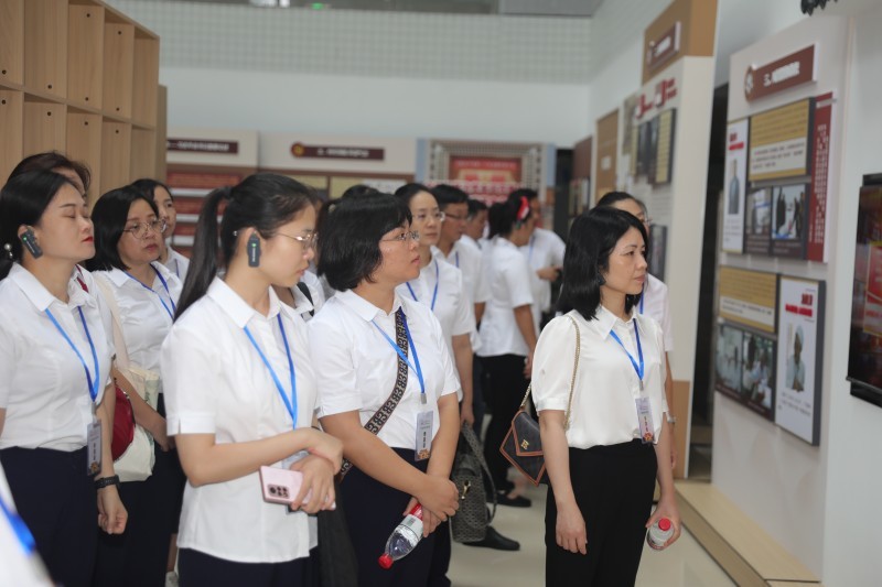 在南溪山医院党委书记柳宏林的热情接待下,广西科技大学第一附属医院代表团一行首先参观了南溪山医院院史展览馆。展览馆内,一幅幅珍贵的历史照片、一件件实物展品生动再现了医院的发展历程和辉煌成就,大家深入了解南溪山医院非凡的发展历程和援越的荣光时刻,深刻感受到南溪山医院医疗工作者“厚德精医”的精神风貌。