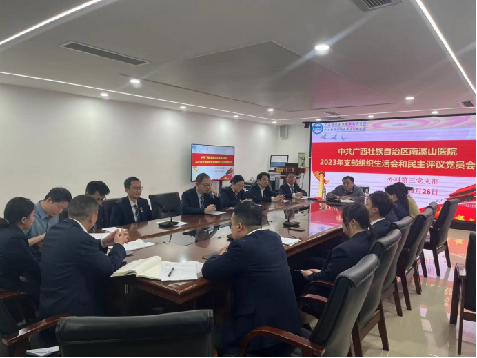 为深入贯彻落实习近平新时代中国特色社会主义思想和党的二十大精神,进一步加强医院党组织建设,推进党基层支部工作进一步落实,提高支部党建工作的整体水平,广西壮族自治区南溪山医院外科第三党支部(脊柱外科)于3月26日召开党支部组织生活会暨民主评议党员大会。会议由支部书记李亮同志主持,支部全体党员参会,支部联系院领导、医院副院长胡长付同志参加会议。