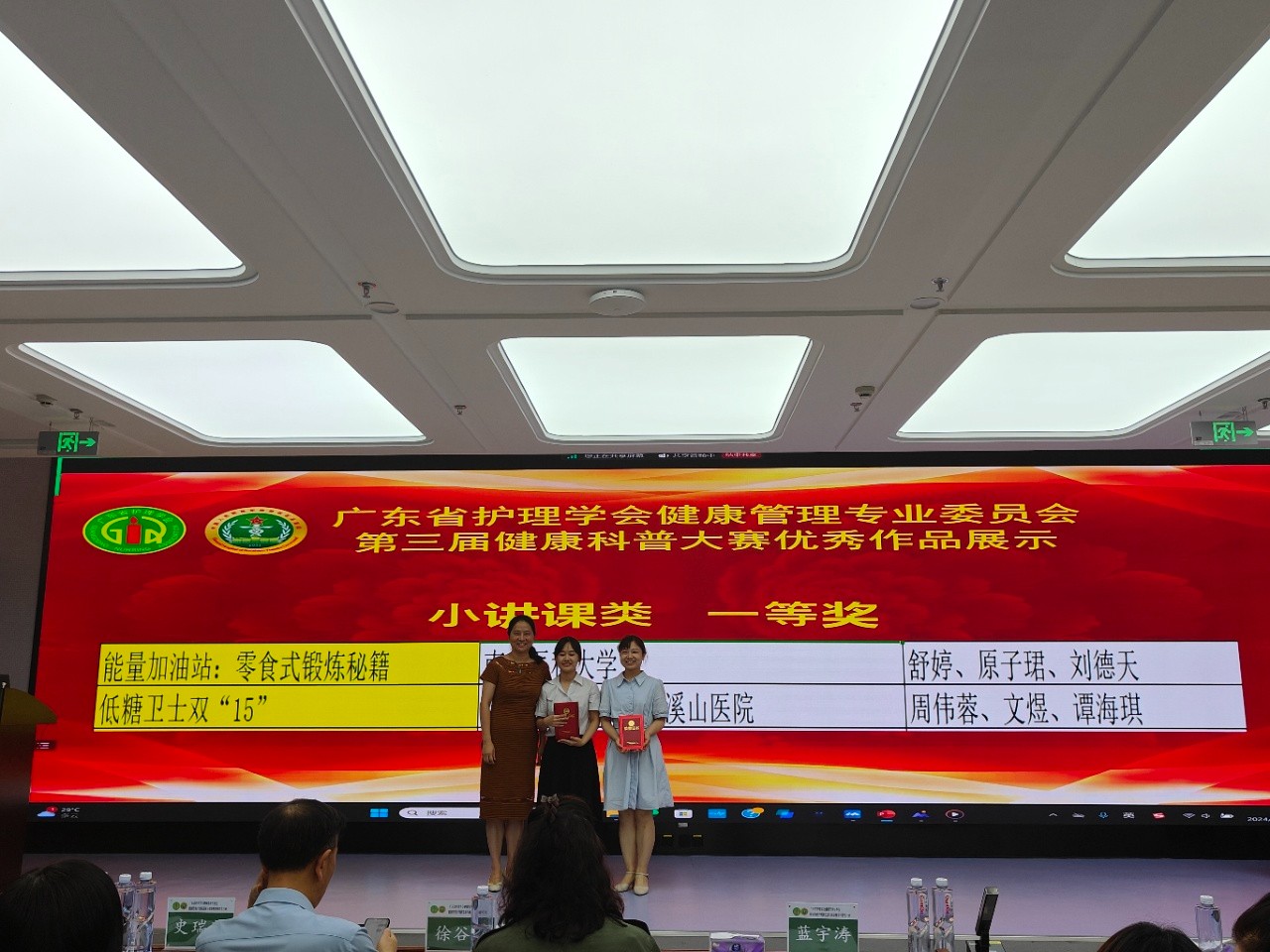 近日,由广东省护理学会主办的第三届健康科普大赛决赛在广东广州举行,广西壮族自治区南溪山医院护理部推选的内分泌科和心血管内科二病区参赛的两个作品《低糖卫士“双15”》和《“向死而生”——慢性心衰的安宁疗护》凭借出色的创意和深刻的内涵,从500多个作品中脱颖而出,分别荣获小讲课赛道和视频赛道的一等奖和三等奖。