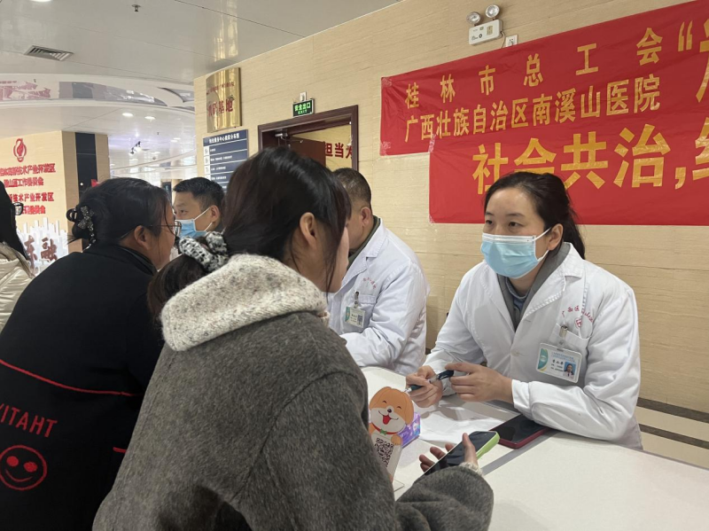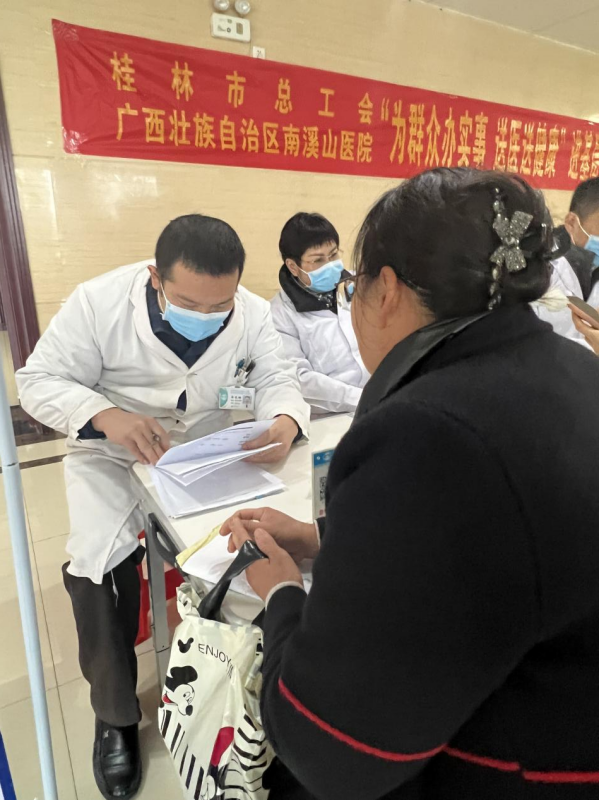 12月10日,桂林市总工会、桂林市雁山区政协、桂林市雁山区卫健局、广西壮族自治区南溪山医院联合开展的“为职工办实事,送医送健康到基层”第119站公益活动走进桂林市雁山区政府大楼,在年末为前来办事的雁山区群众和大楼内的工作人员送去迎新年健康礼。